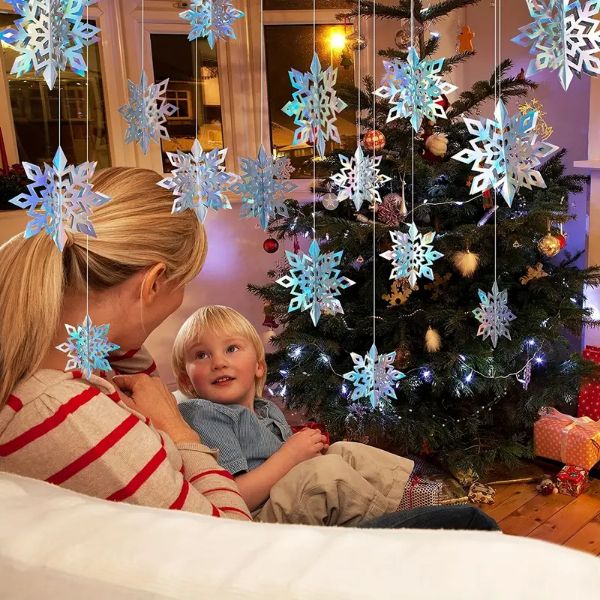 De opvallende 3D hangende kerstsneeuwvlokken zien er prachtig uit als ze aan het plafond worden opgehangen in gangen, deuropeningen of op andere creatieve plekken die je je maar kunt voorstellen.