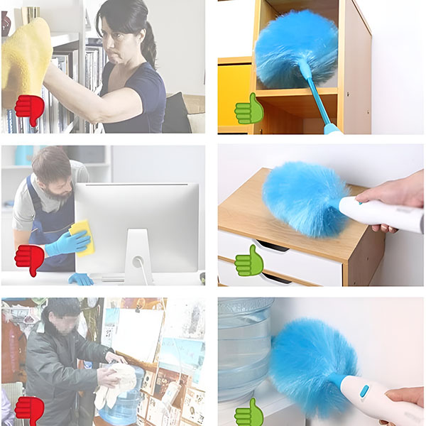 De ultrafijne microvezelkop grijpt en vangt stof, vuil en allergenen direct op, waardoor schoonmaken 5× effectiever is dan traditionele stofdoeken. Geen rondvliegend stof meer—alleen vlekkeloze oppervlakken in seconden!