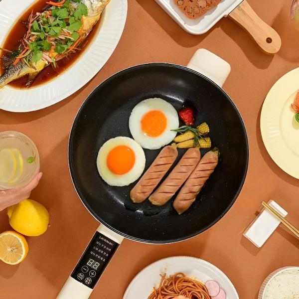 Met deze elektrische koekenpan kun je volledige maaltijden bereiden zonder dat je een fornuis nodig hebt, ideaal voor elke ruimte.