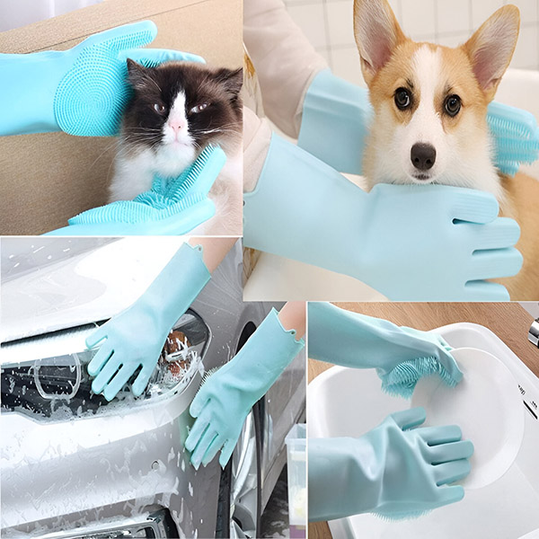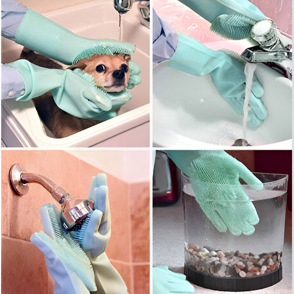 Gebruik beide handen om tijd te besparen en moeilijk schoon te maken plekken zoals het gezicht, de benen en de staart te bereiken. Deze handschoenen zijn gemaakt van hittebestendig siliconen en zijn zacht, flexibel en perfect voor een grondige verzorging.