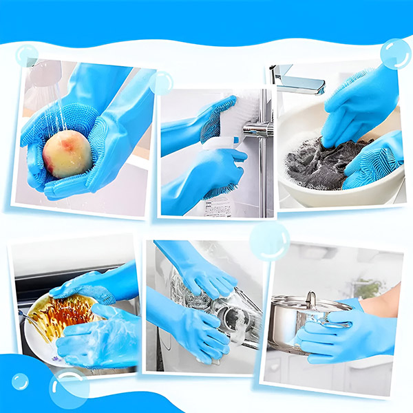 Deze handschoenen zijn ideaal voor de afwas en bieden een veilige grip en een grondige reiniging zonder je vaat te schrapen. Ze zijn ook perfect voor het wassen van fruit en groenten, zodat ze schoon en veilig zijn om te eten.