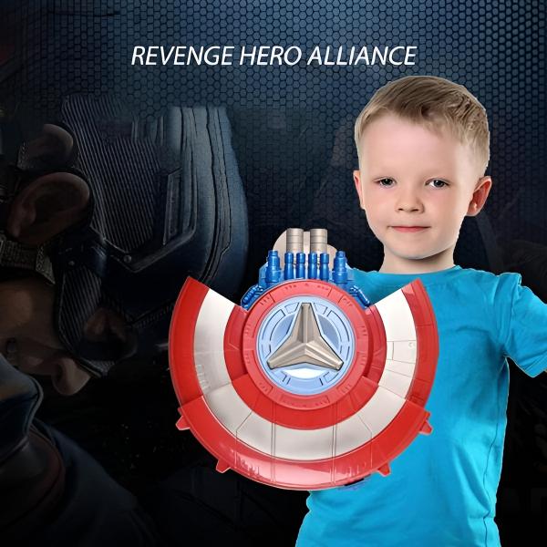 Laat je inspireren om een beroemde superheld te worden met een schild dat niet alleen verdedigt, maar ook zachte schuimdarts afvuurt voor spannend actiespel.