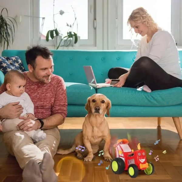 De JUMPICAR is niet zomaar een gewone tractor. Hij kan vooruit en achteruit springen, salto’s maken en zelfs rechtop staan tijdens het springen. Deze leuke acties geven het gevoel dat de tractor leeft en vol energie zit, waardoor je kind betrokken blijft terwijl ze hem trucjes zien doen.