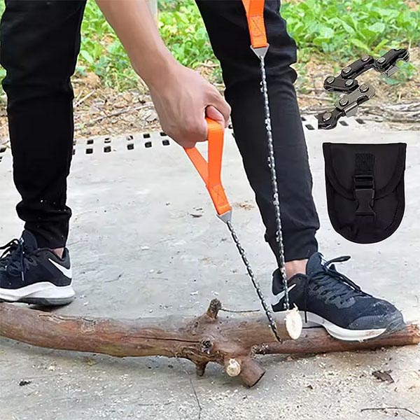 Compact en lichtgewicht, deze kettingzaag past gemakkelijk in uw rugzak. Essentieel voor kampeerders en wandelaars om snel brandhout te verzamelen en kampeerplaatsen voor te bereiden.
