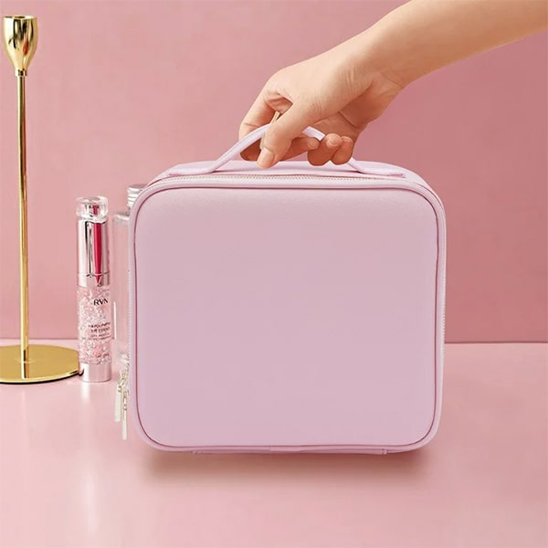 Dankzij de slanke en lichtgewicht constructie past onze make-up opberghoes met spiegel gemakkelijk in je koffer of tas, zodat je je make-up overal mee naartoe kunt nemen.