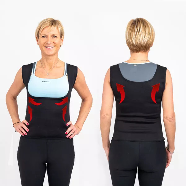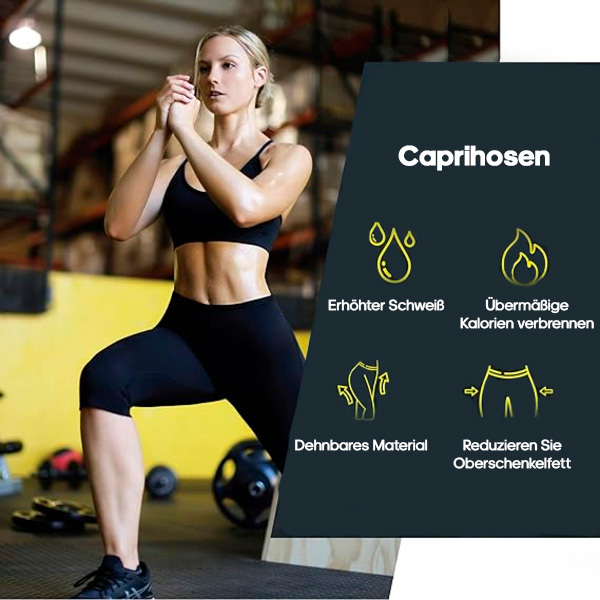 Opnå en slankere silhuet med termo-vesten og termo-capribukserne. De strammer effektivt maven og skjuler små fedtdepoter for en perfekt figur.