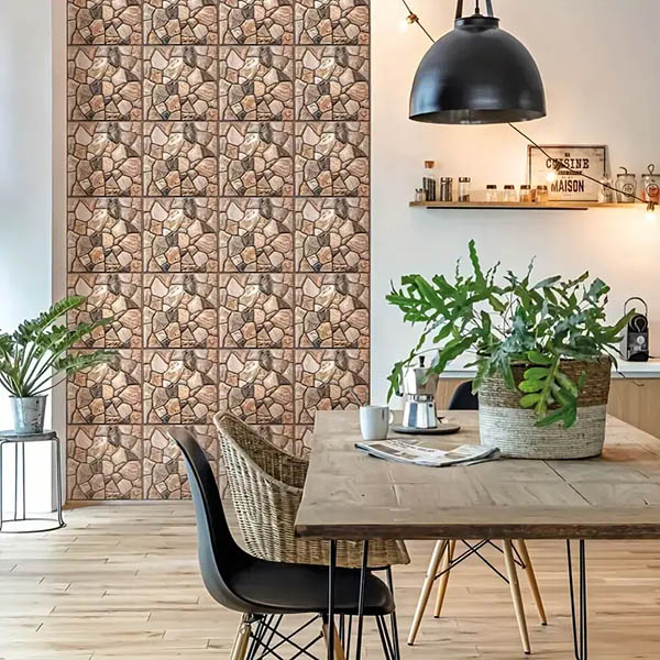 Denne naturstensstil passer til mange indretningsformer – fra moderne minimalisme til rustikke landhuse og hyggelige sommerhuse. Uanset om du vil forny hele rummet eller give et hjørne et unikt præg, passer disse klistermærker perfekt.