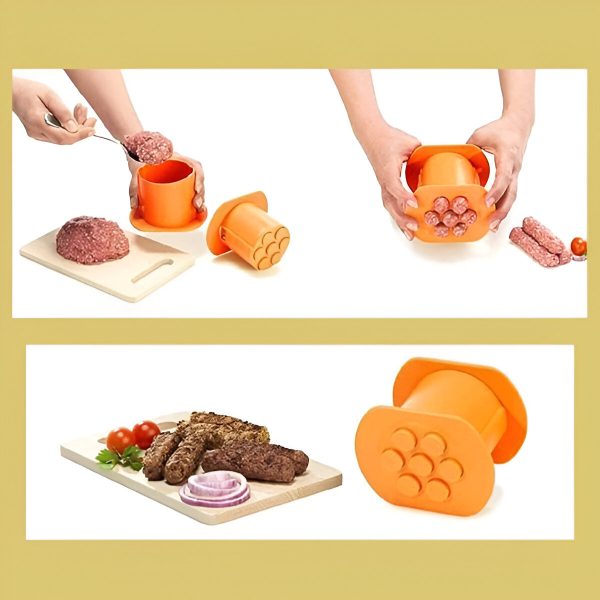 Spar tid og energi! Denne enhed former 7 ensartede ćevapčići med ét enkelt tryk – perfekt til at lave store portioner på få minutter.