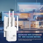 Med 4 kraftfulde antenner eliminerer WIFINA WiFi-forlængeren døde zoner og giver stærk og stabil WiFi-dækning i hele dit hjem eller kontor, op til 1000 kvadratmeter.