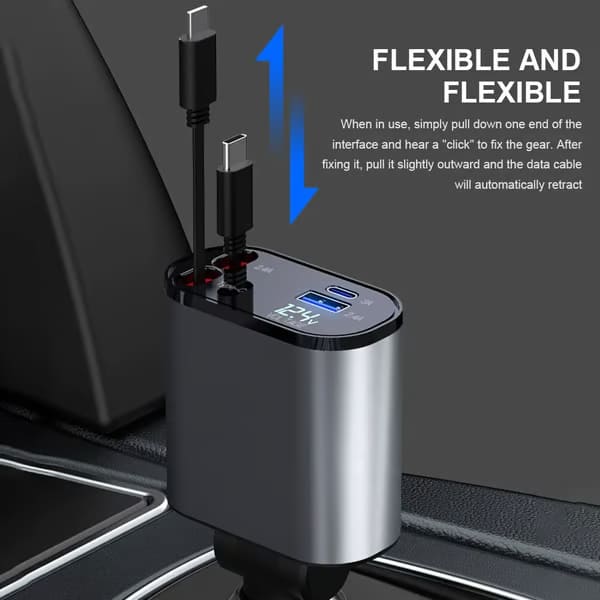 Opladerens kompakte størrelse sikrer, at den passer problemfrit i alle køretøjer og giver nem adgang uden at fylde.