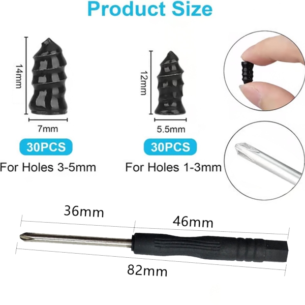 60 skruer til dækreparation (30 små, 30 store)