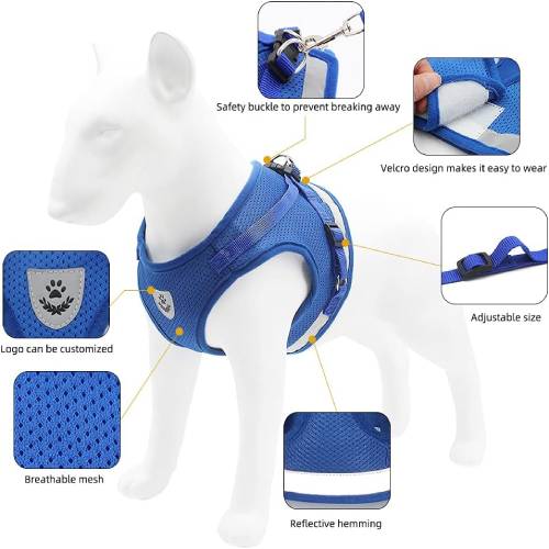 Den justerbare, reflekterende sele og line til kæledyr har et blødt, behageligt og åndbart mesh-design, der forbedrer dit kæledyrs komfort.