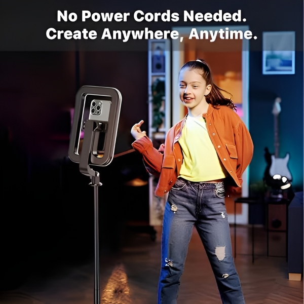 Fungerer med mobiltelefoner, GoPro og kameraer – ideel til vlogs, makeup, Zoom-opkald eller studieoptagelser.