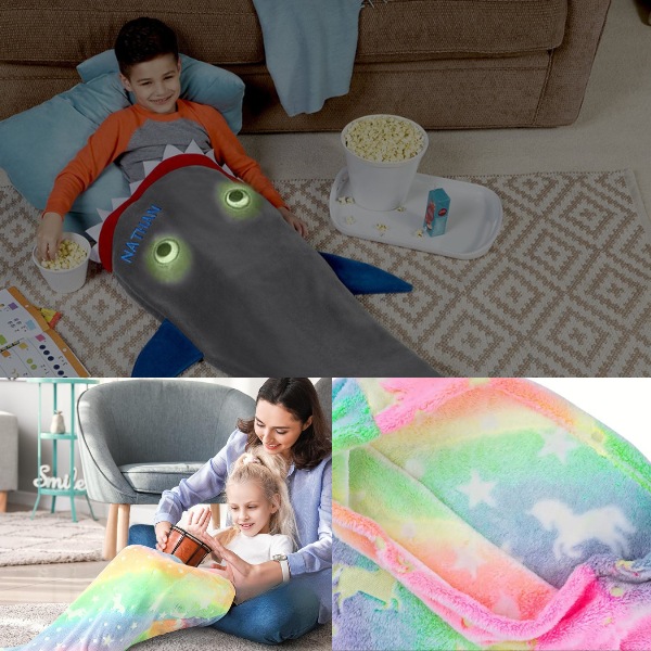 Det bløde, højkvalitets flannel-fleece holder børn varme, mens de slapper af efter skole eller gør sig klar til sengetid. Perfekt til at putte sig på sofaen under en tegnefilm eller holde varmen på kolde nætter. Dine børn vil elske at rulle sig ind i enten haj- eller havfruehalen.