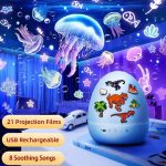 Fjern lampeskærmen for at afsløre en højopløselig projektor, der viser fængslende billeder som dinosaurer, stjerner og havfruer og skaber en magisk stemning.