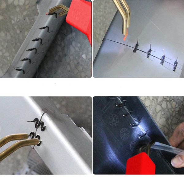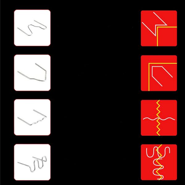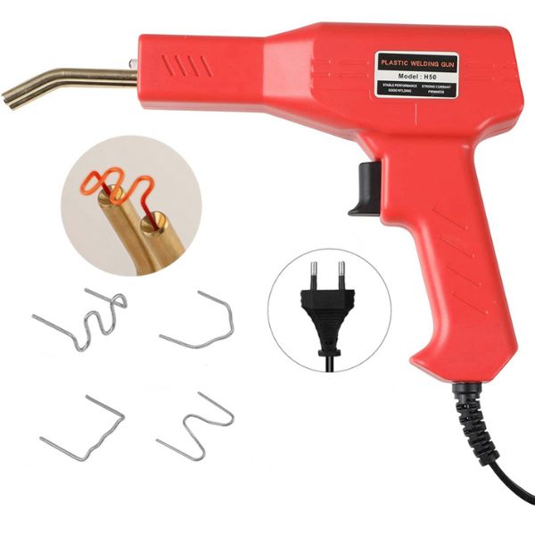 Ud over svejseværktøjet indeholder pakken også en tang, en kniv og 200 klammer i forskellige størrelser i en praktisk taske. Disse klammer er holdbare samt varme- og vandbestandige, hvilket sikrer lang levetid.