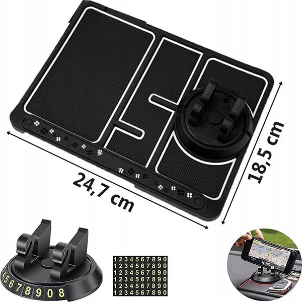 📏 Universel kompatibilitet: Med målene 24,7 x 18,5 cm passer måtten perfekt på ethvert bilinstrumentbræt og sikrer et fast og stabilt greb.