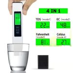 Målinger: TDS (0-9990 PPM), EC, temperatur i °C og °F
